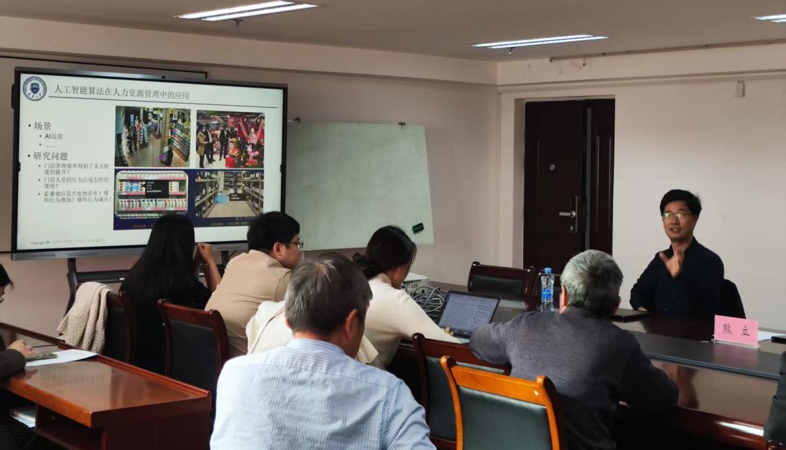11月26日下午,工商管理学院邀请天津大学组织与战略管理系特聘研究员、博士生导师席猛在中至大楼704会议室作题为“数智时代的算法人力资源管理研究”的学术讲座。人力资源管理系主任熊立教授出席并主持讲座,学院30余名师生代表与会聆听。