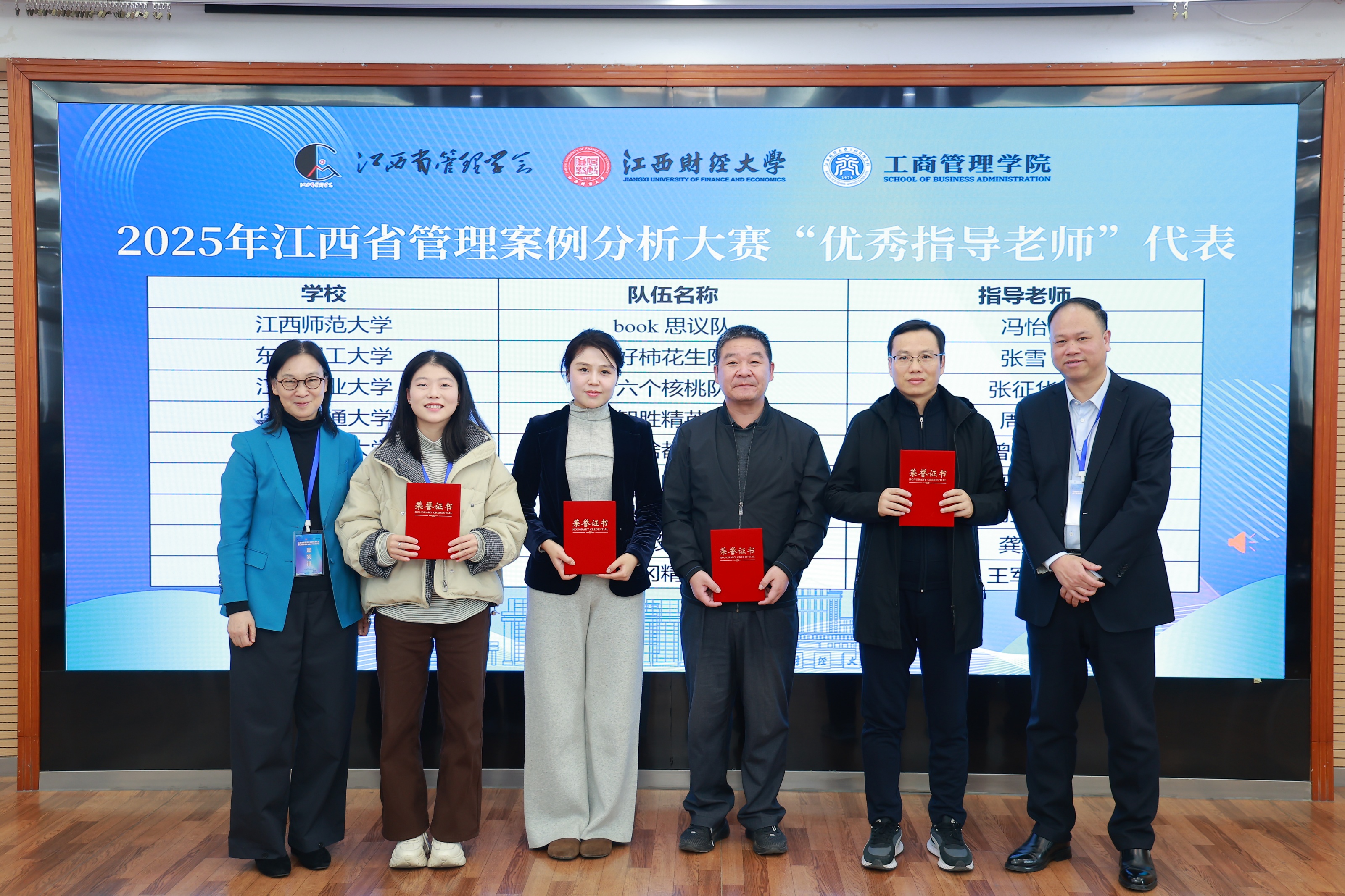 本次年会还设置了颁奖环节,江西财经大学评价中心主任蔡文著教授主持颁奖仪式。大会对2025年江西省管理案例分析大赛获奖团队、优秀指导老师及年会优秀论文作者进行了表彰。
