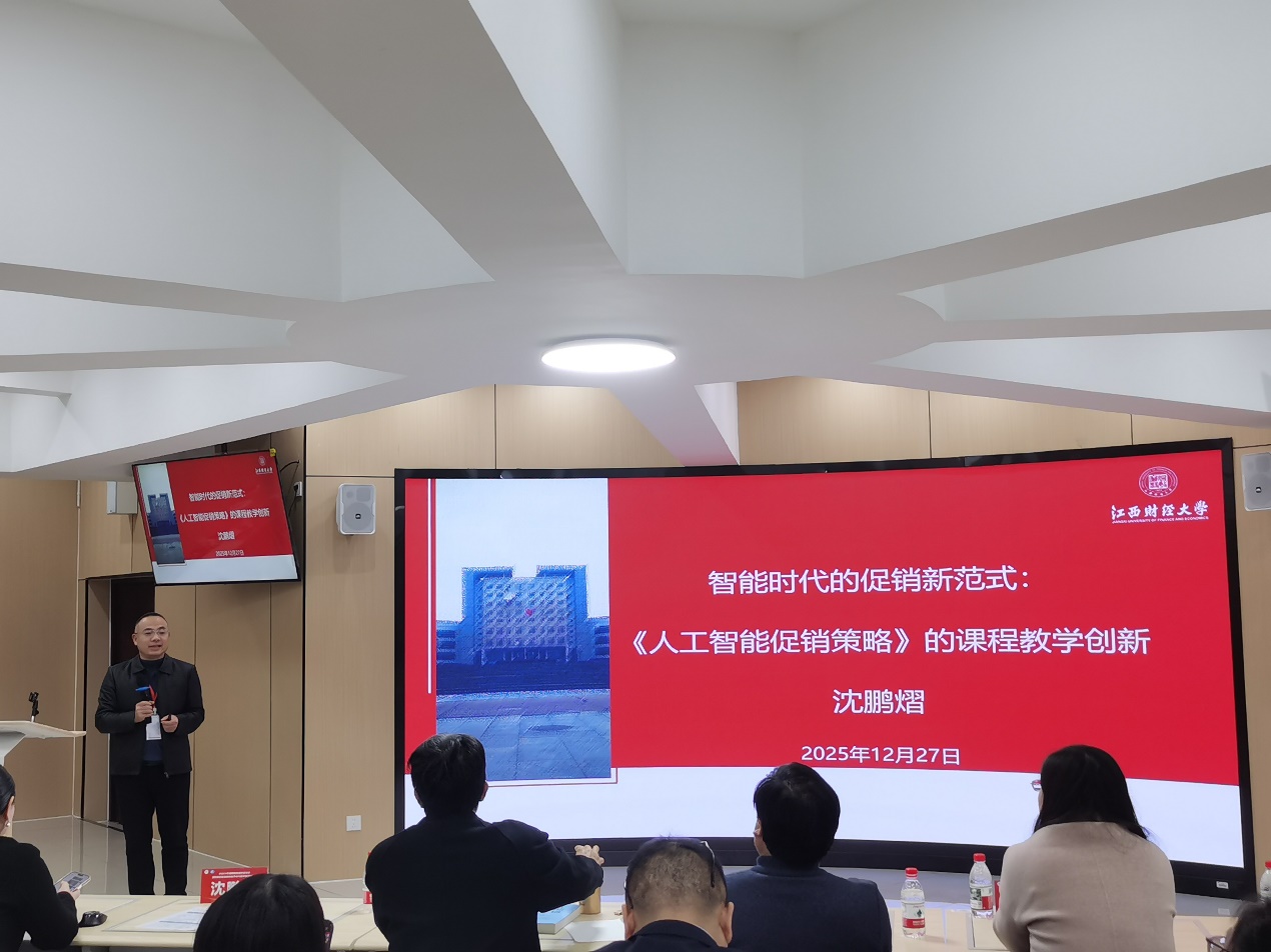 在专题报告环节,谌飞龙教授作了题为《科技成果转化与创业营销》的主题报告,沈鹏熠教授作了题为《人工智能促销策略的课程教学创新》的主题报告。两位教授结合支部在教学一线积累的鲜活案例,深入阐述了如何通过党建引领业务创新,将AI技术融入市场营销专业核心课程,为与会的全国百余位专家学者提供了极具价值的“江财视角”,充分彰显了支部在数智化转型中的教研先锋作用。