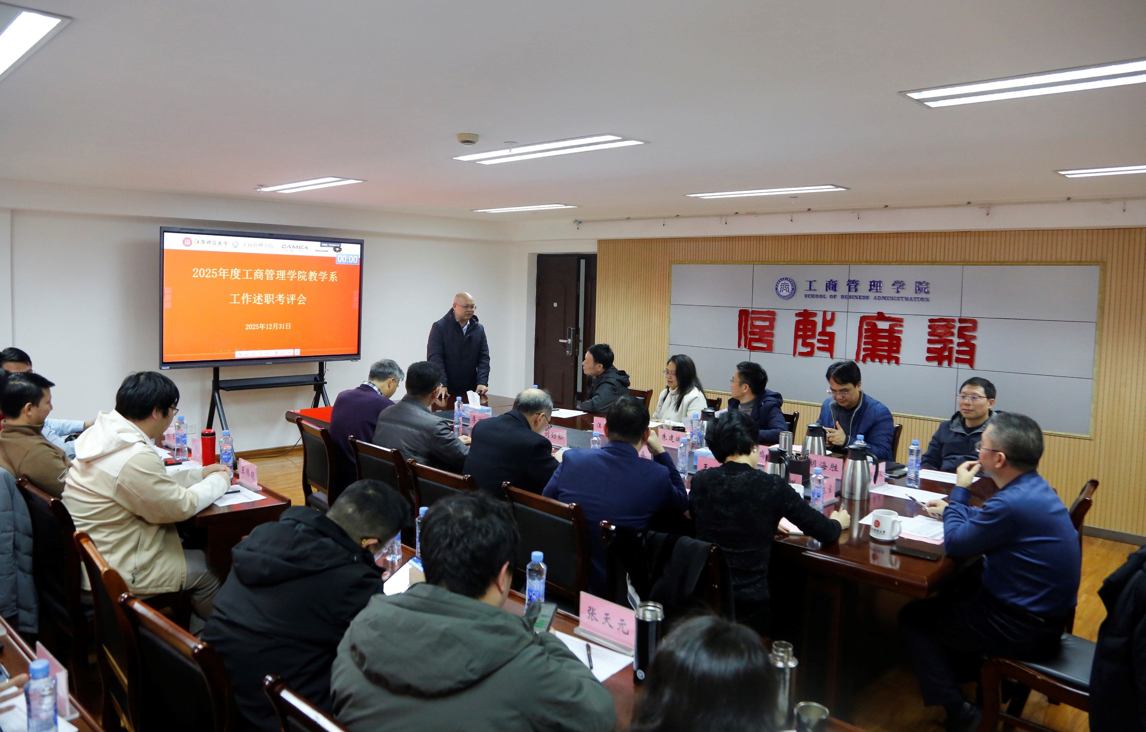12月31日下午,工商管理学院召开“2025年度教学系述职考评会”。在院领导班子成员,各系专家代表、科室负责人及系主任参加会议,会议由副院长朱建斌主持。