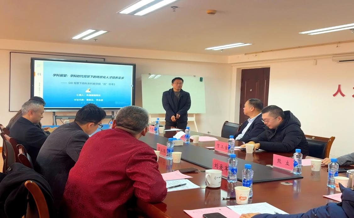 朱建斌副院长作《AI背景下商科本科教学提质思考》分享,聚焦AI时代商科人才培养与教学应用,明确AI优劣势,强调规避“死亡之轮”、转变教师角色、培养学生核心能力。