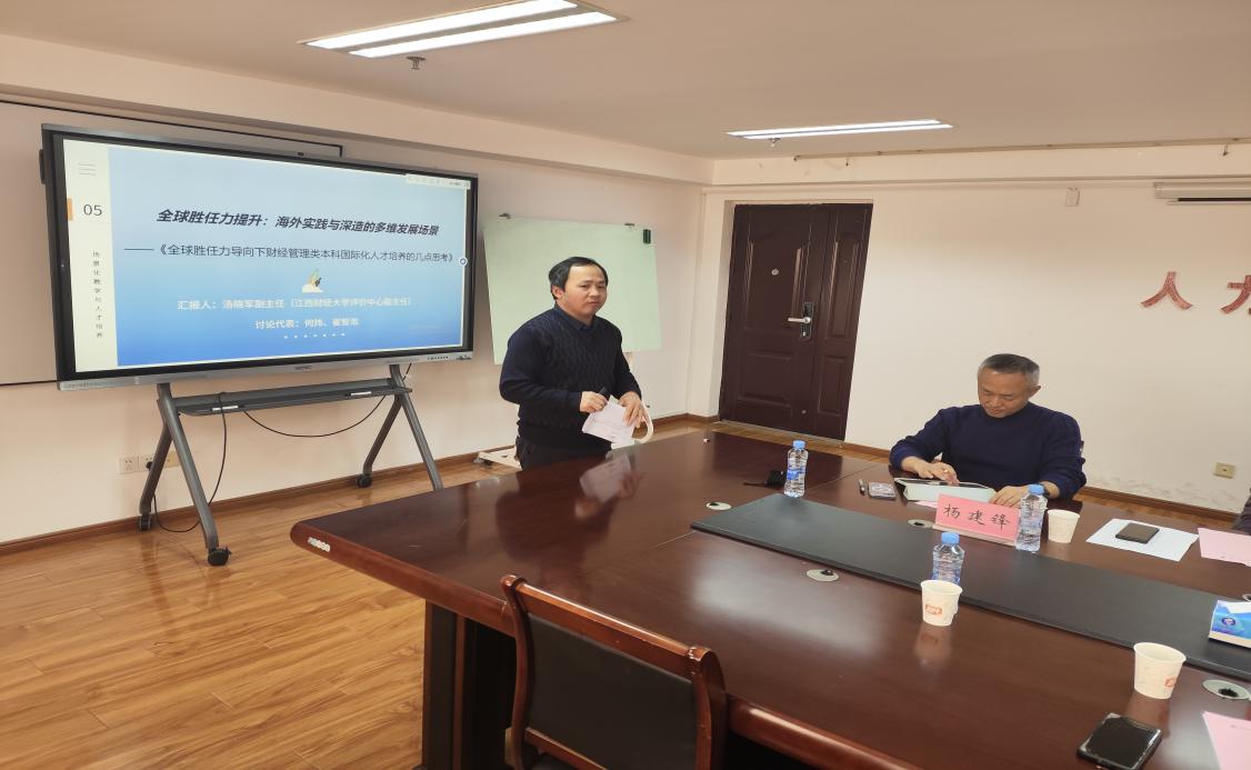 汤晓军围绕全球胜任力导向的财经管理类本科国际化人才培养,提出需以发展眼光前瞻性设计培养方案,提出课程优化与改革的具体思路。