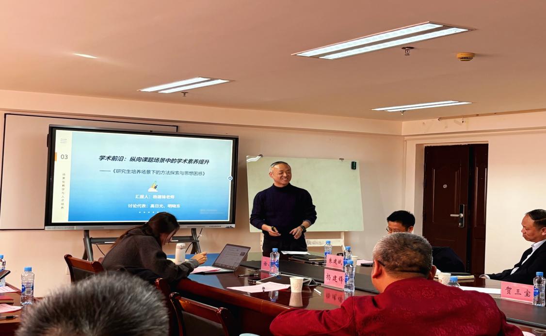 杨建锋老师分享带学生经验并展开相关探讨,涵盖学生选拔、教学调整、尊重选择等内容,分析培养困境、需求考核与师生关系问题。明晓东老师在点评时谈到杨老师带学生风格为变革型领导,擅长愿景激励、智能激发。